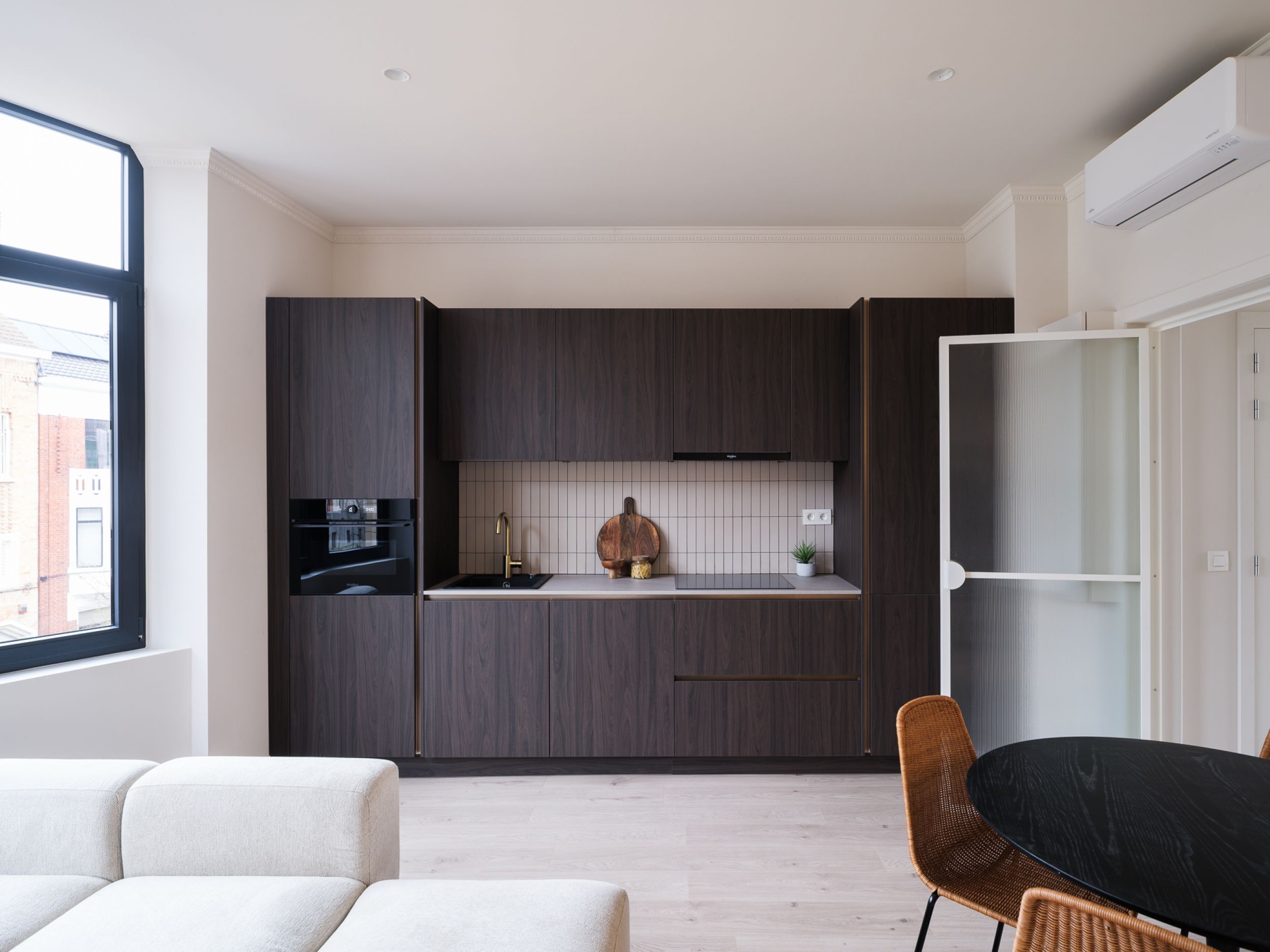 Er werd tijdens de renovatie veel aandacht besteed aan de keuze van de materialen, zoals karaktervolle kroon- en wandlijsten, chroom inbouwkranen, design verlichting (HAY en FLOS) en duurzame bevloering.